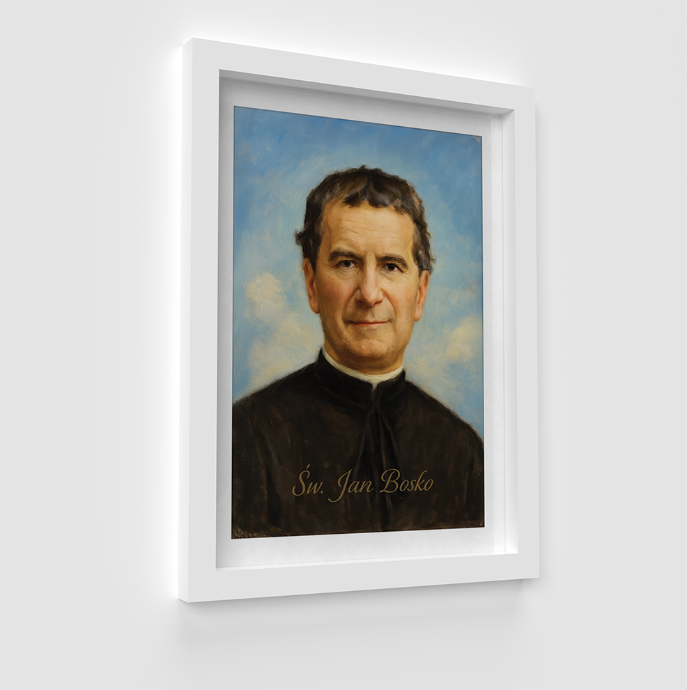 Dodaj do swojej kolekcji wyjątkowy obraz przedstawiający Świętego Jana Bosko, jednego z najbardziej cenionych świętych Kościoła katolickiego, znanego z niezwykłego oddania młodzieży, edukacji i wychowaniu w duchu chrześcijańskim.